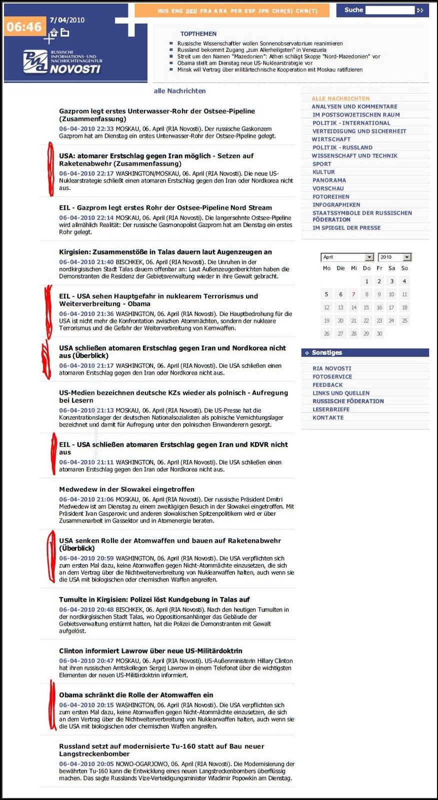 Schaut euch mal die Schlagzeilen von Ria Novosti am 6.4.2010 an.